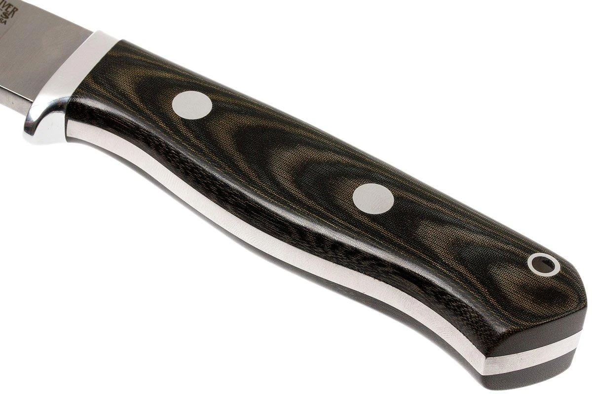 El Bark River Gameskeeper es un gran cuchillo de caza. Este cuchillo fue diseñado específicamente para la caza mayor como el ciervo, el alce o el oso. Este cuchillo puede hacer frente a las tareas más exigentes. Hacia la punta la hoja sigue siendo muy gruesa. Por ello, la punta es extra fuerte. Se colocó una ranura plana para el dedo justo detrás del borde, antes de la virola. De este modo, puedes mantenerlo un poco más cerca del borde para las tareas más detalladas.