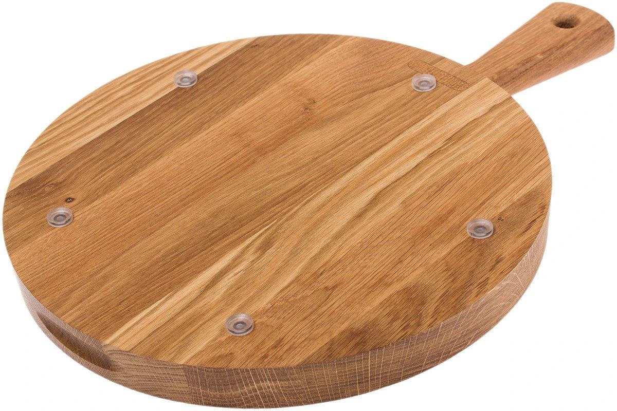 Con esta tabla de quesos Boska Friends M podrás presentar tus quesos de la mejor manera posible. La tabla de quesos redonda de tamaño medio tiene un diámetro de 29,5 cm. Lo suficientemente grande como para servir varios quesos. La tabla está hecha de madera de roble europeo: un tipo de madera dura que no absorbe el sabor ni los olores del queso. Además, también puedes utilizarla como tabla de cortar. Una tabla moderna y natural para servir el queso.