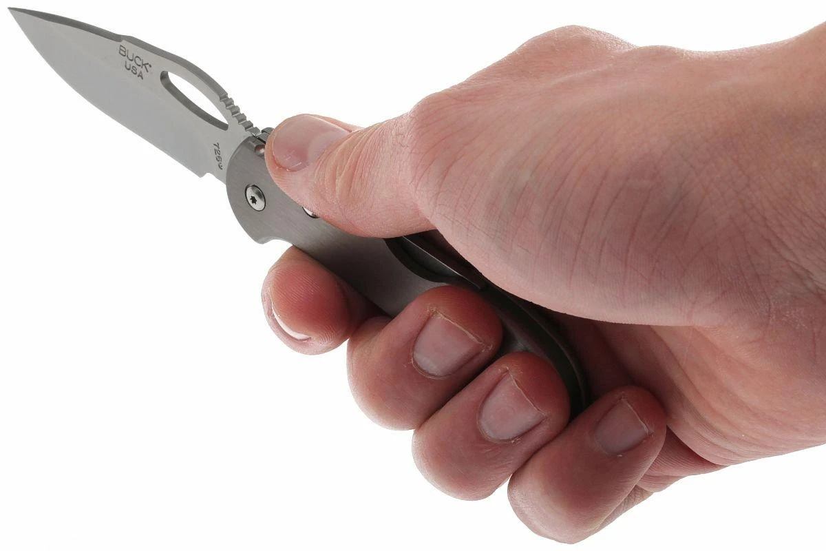 El Buck 726 Mini Spitfire es el hermano pequeño del 722 Spitfire. Es un buen y moderno cuchillo EDC. Ideal para llevarlo a diario. El cuchillo es delgado, ligero y fácil de abrir con una sola mano. Básicamente todo lo que buscas en un cuchillo EDC. El clip de bolsillo se puede montar de 2 maneras diferentes. Esto significa que puedes elegir cómo quieres llevarlo en tu bolsillo. En la parte posterior del mango y en la parte inferior, hay recortes para un mayor agarre.
