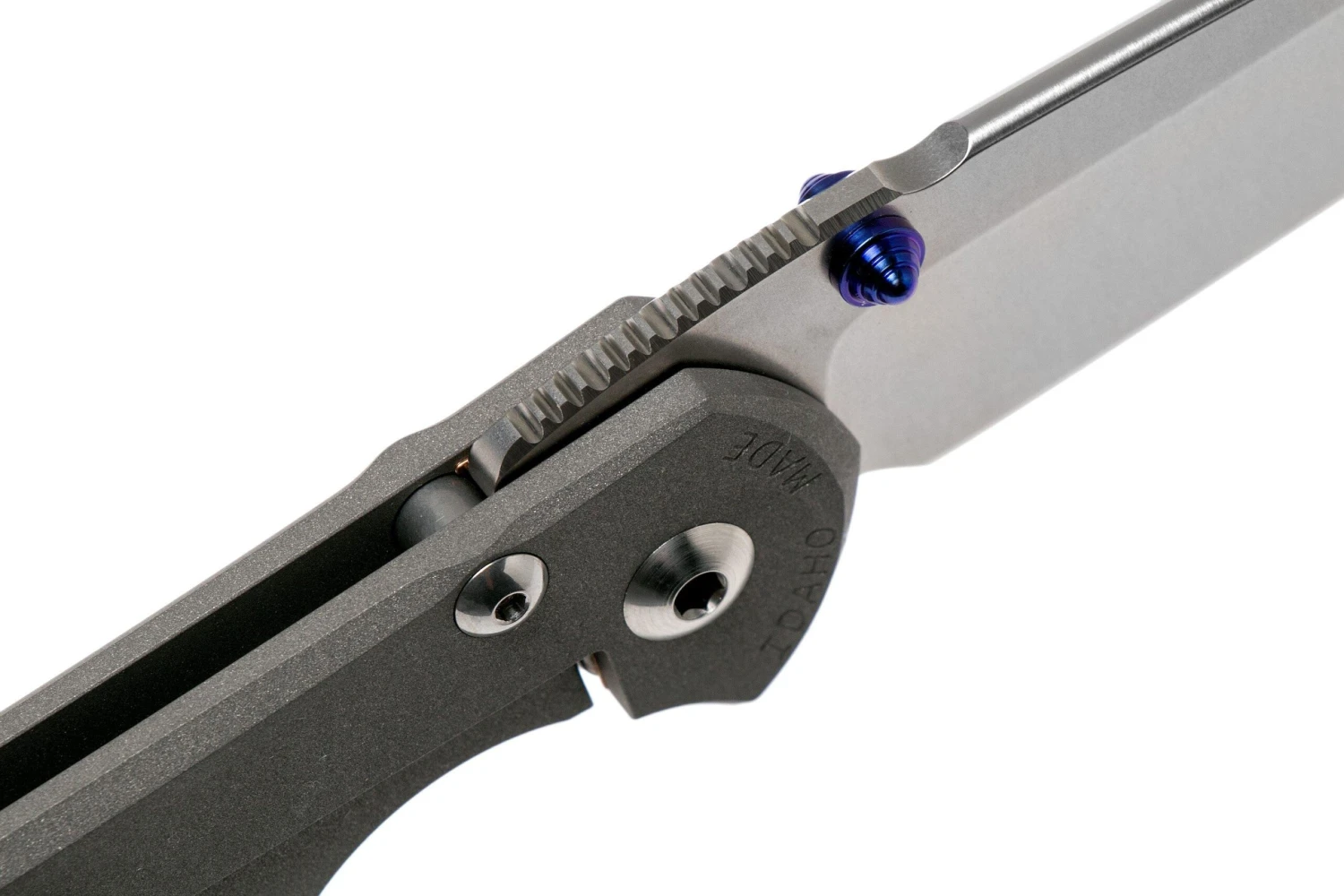 La Chris Reeve Inkosi Large Tanto es una navaja de alta gama, diseñada por el fabricante de cuchillos Chris Reeve. Inkosi significa Jefe en zulú. Se trata de la encarnación más reciente del famoso modelo Sebenza 25, pero sigue teniendo sus propias características. El pivote sobredimensionado está presente y el recorte de dedos adicional en el mango. Al igual que en la Sebenza 25, el pasador de seguridad y el pasador de lanyard se encuentran en la parte posterior del mango. Y qué pasa con el perno del pulgar que se encuentra en ambos lados de la hoja. La hoja es un 8% más gruesa que la de la Sebenza 25 y está mejorada con el afilado hueco grande. De este modo, el cuchillo durará aún más después del afilado, sin sacrificar su resistencia. Como es habitual en las navajas de alta gama, Chris Reeve ha mejorado la Inkosi con una bola de retención de cerámica.
