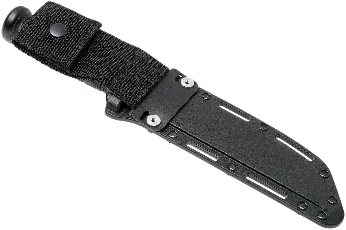 El Cold Steel 39LSFCT Leatherneck Tanto es un cuchillo fijo con apariencia táctica. La hoja está hecha de acero para herramientas D2 alemán. Se trata de un tipo de acero no inoxidable con cualidades excepcionales en cuanto a la retención del filo y la dureza. Para proteger la hoja se ha mejorado con un revestimiento negro. El mango de este cuchillo está hecho de Kray-Ex y te ofrece mucho agarre. Para garantizar que el cuchillo no te resbale de las manos y te cortes con la hoja, está equipado con un robusto protector de dedos de acero.