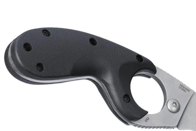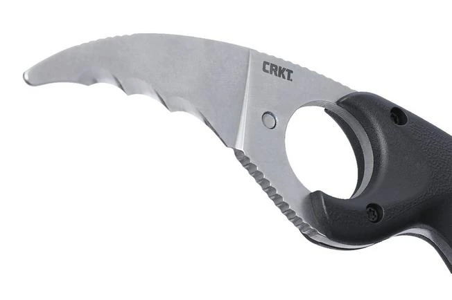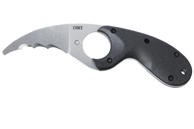 La navaja CRKT Bear Claw Stonewash, Veff Serrations 2511 es una de las favoritas entre los balseros de aguas bravas, los entusiastas de los deportes acuáticos y los socorristas. Se trata de una navaja compacta con hoja de forma de hawkbill (carey), ideal para cortar cuerdas y correas. La hoja de esta versión tiene la punta roma, lo que hace que el cuchillo sea más seguro de transportar y utilizar, especialmente alrededor de embarcaciones hinchables. El mango texturizado tiene un agujero para meter el dedo, lo que hace que la Garra de Oso sea fácil de sujetar en condiciones húmedas.