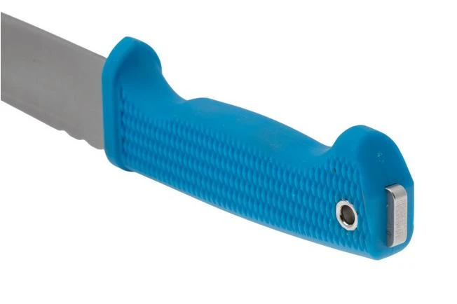 El Demko Knives FreeReign es un cuchillo fijo bestial, diseñado para uso pesado. Esto se refleja en la hoja de 5 mm de grosor y en el agarre del mango. El estilo de Andrew se ve claramente. Por ejemplo, el mango se parece al de las Cold Steel AD10 y AD15. La innovadora funda de kydex pendiente de patente ofrece muchas opciones de transporte diferentes, lo que te permite fijar el cuchillo a tu equipo de varias maneras.