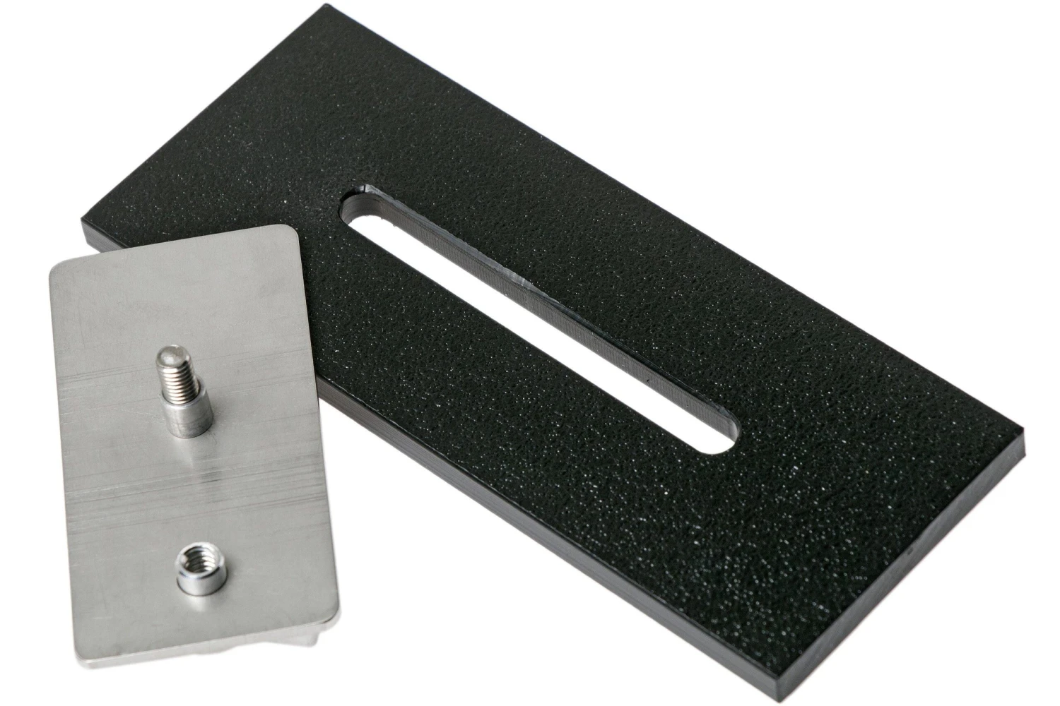 Este adaptador tiene una plataforma más pequeña que ofrece más flexibilidad a la hora de afilar cuchillos pequeños y navajas con apoyo para el pulgar.