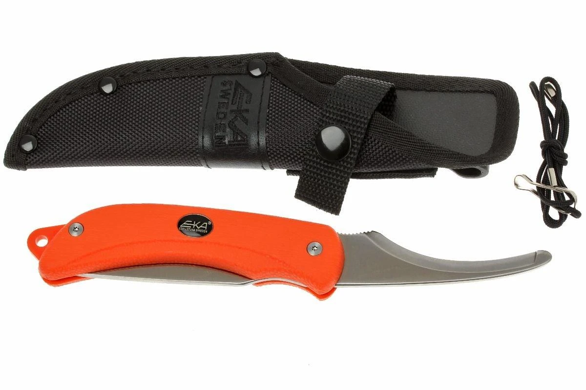 El G3 es el cuchillo de caza definitivo. EKA ha desarrollado un sistema muy inteligente para convertir dos cuchillos fijos en uno con el G3. La mitad de la hoja, con una longitud total de 19,1 cm, desaparece en el mango. Ambas mitades tienen su propia finalidad. La parte con forma de hoja normal puede utilizarse como cualquier otro cuchillo. La otra mitad de la hoja es ideal para quitar las pieles de la fauna cazada.