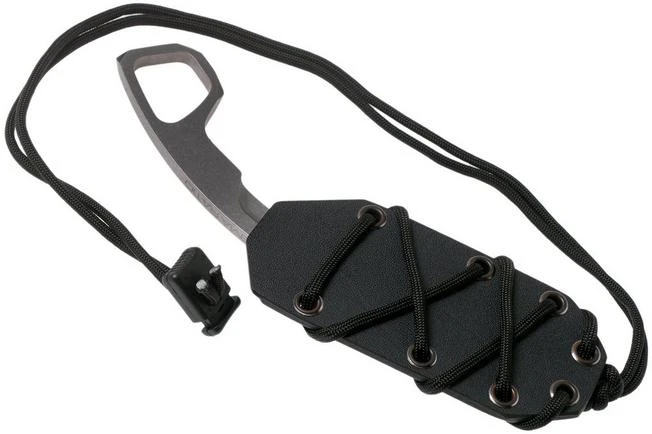 El Extrema Ratio N.K.3 K es un cuchillo de cuello compacto. Es una versión en karambito del popular N.K.3. Hecho para aplicaciones tácticas. El mango y la hoja están hechos de una sola pieza de acero. No tiene cachas. Esto hace que el cuchillo de cuello sea muy plano, por lo que puedes llevarlo discretamente bajo la camisa o la chaqueta.