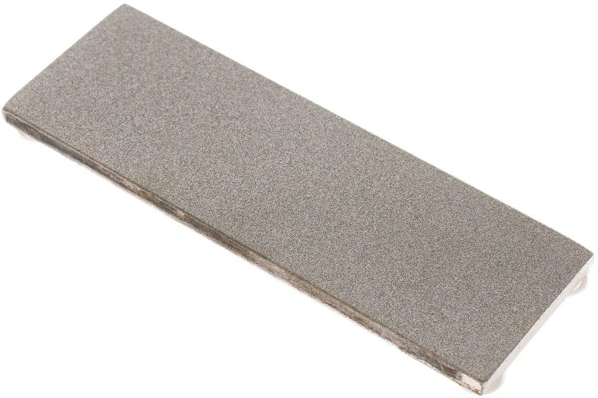 La EZE-LAP 2×6″ 61M es una piedra de afilar de diamante con un tamaño de grano medio (grano 400). Utiliza esta piedra mediana para devolverle la vida a un filo opaco y darle un acabado afilado. La ventaja del diamante como abrasivo es que elimina rápidamente el material. Además, su superficie se mantiene agradable y suave, y la piedra dura mucho tiempo.