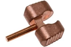 Este Flytanium Manix 2 Ball Cage Lock fue realizado específicamente para el mecanismo de cierre de la Spyderco Manix 2. Esta pieza sustituye a la parte de plástico de la cerradura que contiene la bola de acero. Ten en cuenta que el cobre se patina con el tiempo, por lo que cada juego tendrá un aspecto único.