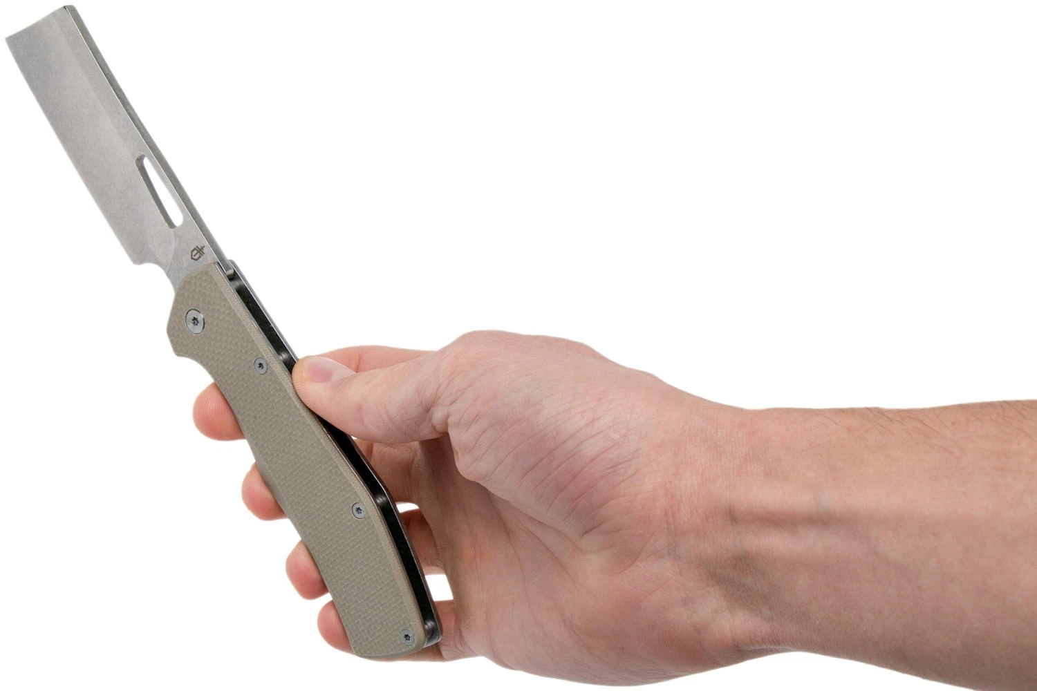 La Gerber Flatiron es una sólida navaja con una hoja tipo cuchilla. Es una forma de hoja que se ve a menudo en los cuchillos de carnicero. Debido al filo recto, este tipo de forma es perfecta para su uso en la cocina.
