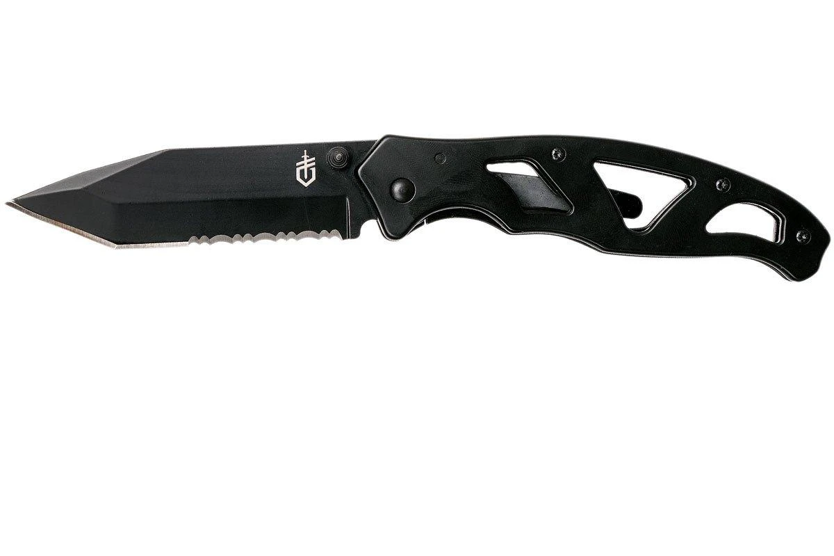 La Gerber Paraframe II Tanto es la edición más grande y táctica de la clásica Paraframe. La navaja es completamente negra y tiene una hoja parcialmente dentada y puntiaguda. El armazón abierto, similar al del Paraframe original, ahorra peso y garantiza que la navaja pueda limpiarse fácilmente. Una llamativa navaja táctica de bolsillo.