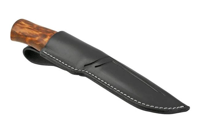 El Helle Eggen 12C27 es un popular cuchillo para todo tipo de actividades al aire libre. El cuchillo debe su popularidad a su cómodo agarre, sus materiales de primera calidad y su clásico diseño escandinavo. El mango está lijado y pulido a mano. Para un cuchillo asequible como el Helle Eggen, esto sólo puede calificarse de extraordinario. El cuchillo viene con una funda de cuero que resalta el diseño tradicional escandinavo.