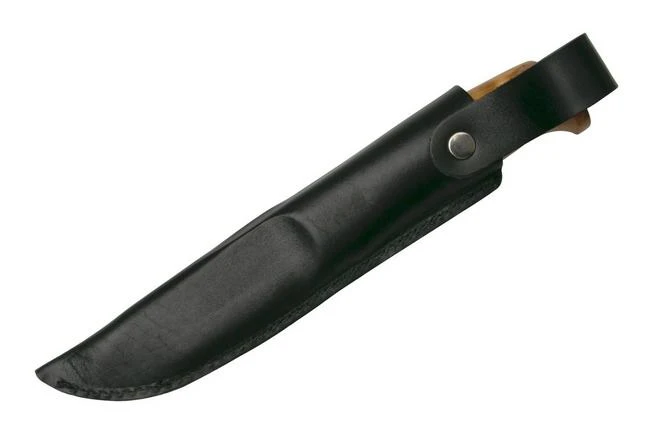 El Helle Gaupe 12C27 es un cuchillo para todo tipo de actividades al aire libre. La palabra Gaupe significa lince en noruego. Hay un sutil protector de dedos en el mango. Se trata de la protuberancia en el mango que garantiza que la mano no se deslice del mango a la hoja durante el uso. El cuchillo viene con una funda de cuero tradicional escandinava.