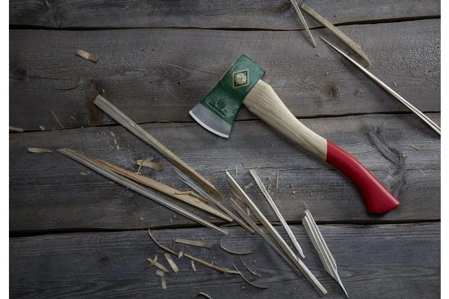 Esta Hacha Hultafors 325 Anniversary Limited Edition celebra el 325 aniversario de la forja en Hults Bruk, Suecia. El diseño se inspira en algunos de los modelos favoritos de Hults Bruk del pasado. El hacha viene con un llavero de cuero con un clavo de barco. En 1697 se empezó a forjar este tipo de clavo en Hults Bruk.