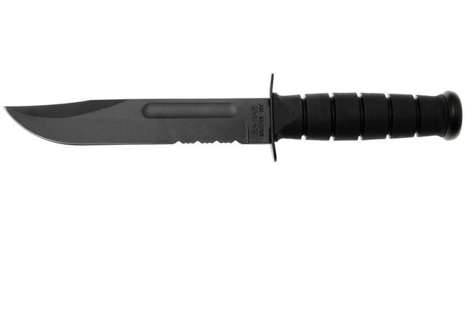 KA-BAR 1212 Cuchillo Fijo, Parcialmente Dentado, Funda De Cuero