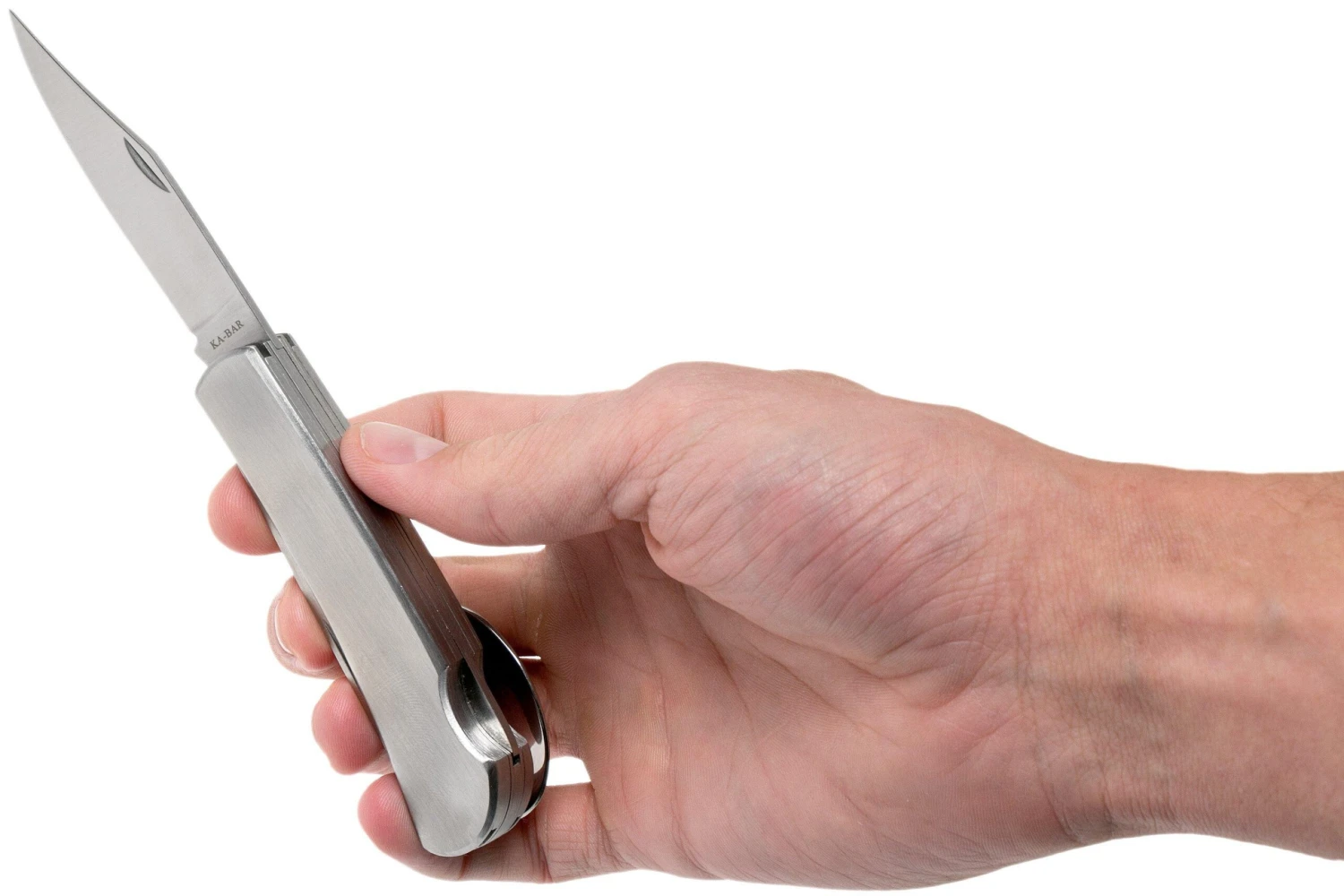 La KA-BAR Hobo Outdoor Diner 02-1300 es una herramienta práctica cuando se va de camping. Esta herramienta está mejorada con una hoja que se bloquea, una cuchara y un tenedor con abridor de botellas. En resumen: todo lo necesario para disfrutar de una comida al aire libre. La KA-BAR Hobo Outdoor Diner viene con una sólida funda de nylon para el cinturón para que puedas llevar la herramienta en tu cinturón. Genial durante una excursión.