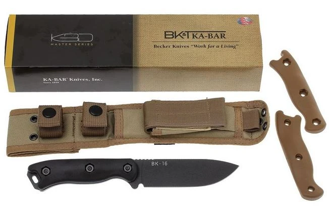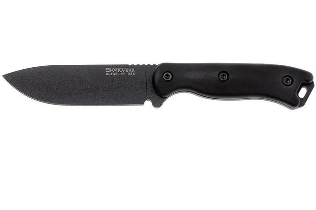 El KA-BAR Short Becker Drop Point BK16 es el resultado de la colaboración entre el diseñador de cuchillos Ethan Becker y KA-BAR. Se trata de un cuchillo polivalente muy bien diseñado. La hoja está hecha de acero carbono 1095, por lo que este cuchillo no es inoxidable. Por suerte, la hoja tiene un revestimiento negro que hace que el mantenimiento sea mucho más fácil.
