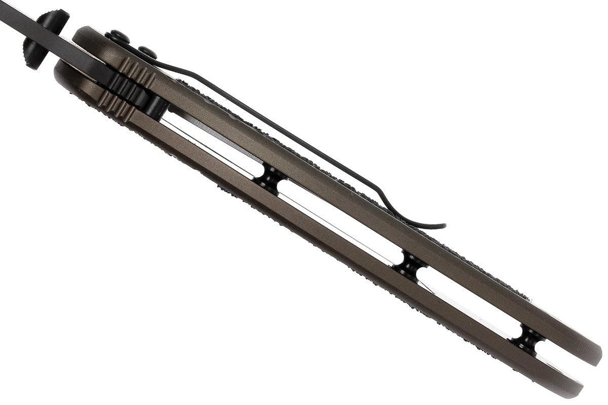 El famoso fabricante de cuchillos Ken Onion ha puesto claramente su firma en el diseño de la Kershaw Blur. La hoja ondulada con la apertura asistida y el perno para el pulgar para abrir la hoja rápida y fácilmente con una sola mano. Esto es válido tanto para los usuarios zurdos como para los diestros. La hoja se ha fabricado en negro con recubrimiento DLC (Diamond Like Carbon), que le da un aspecto táctico. El mango de aluminio aeronáutico lleva incrustada la cinta de agarre Trac-Tec. Esto proporciona un muy buen agarre, incluso en condiciones de humedad. También refuerza el aspecto táctico. El cuchillo es adecuado para el uso diario, gracias a sus modestas dimensiones. Este cuchillo está pensado para un uso muy intensivo.