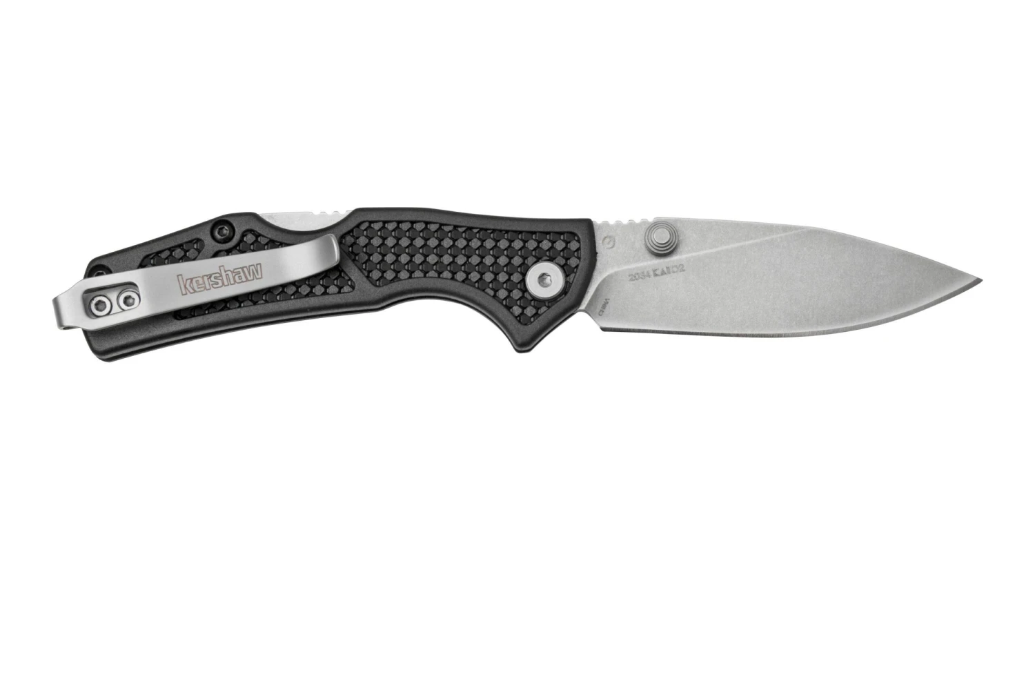 La Kershaw Debris 2034 es una pequeña y delgada navaja EDC. La hoja se abre fácilmente con el perno del pulgar. Cuando se abre, la hoja se bloquea en su lugar mediante un cierre trasero (backlock). El mango está hecho de FRN negro con una agradable textura. Esta textura parece resistente y también proporciona un mejor agarre. La hoja está hecha de acero D2. Se trata de un acero para herramientas con gran retención de afilado. Cabe mencionar que el D2 no es completamente inoxidable. Por lo tanto, límpialo después del contacto con la humedad y ponle aceite de vez en cuando. El clip de bolsillo intercambiable te permite llevar fácilmente la Kershaw Debris contigo.