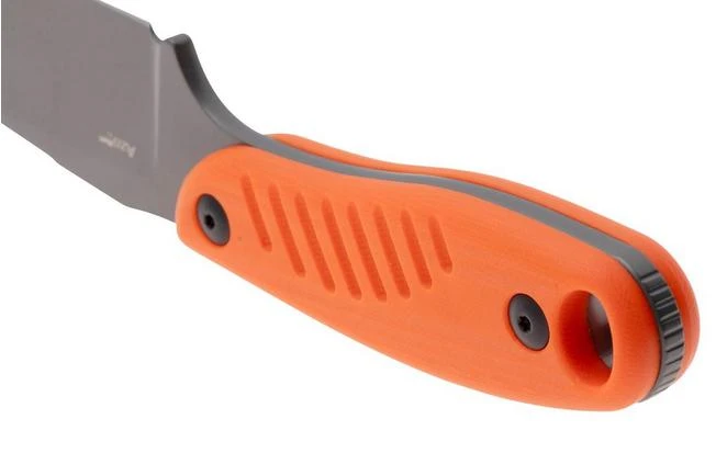 El Kizer Hare 1077A1 Grey PVD D2, Orange G10 está especialmente diseñado en tamaño compacto para bushcraft y aventuras al aire libre en un diseño compacto. La hoja drop-point, revestida en resistente PVD gris, destaca en tareas de corte y tallado y ofrece una mayor resistencia a la corrosión para un uso prolongado en entornos exigentes. El mango es muy ergonómico y adherente, ofreciendo un agarre seguro en todas las situaciones. Gracias al estriado en el lomo de la hoja, tu agarre estará aún más asegurado. ¡Perfecto para tareas de corte controlado!