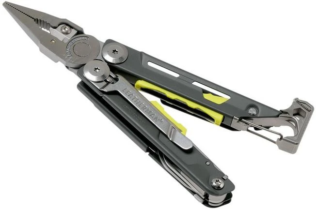 La Leatherman Signal Granite Grey es la multiherramienta ideal para los amantes de la supervivencia. Esta herramienta se distingue del resto con un par de herramientas específicas que resultan muy útiles al adentrarse en la naturaleza. Por ejemplo, está dotada de un silbato de emergencia, un yesquero, una piedra de afilar de diamante y muchas otras herramientas prácticas. Cuando está cerrada, el extremo romo de las herramientas funciona como martillo y mosquetón. También se puede utilizar para abrir una botella. Pero eso no es todo, tiene una pequeña pestaña para asegurar la herramienta cuando está cerrada. El clip de bolsillo estándar permite llevar la herramienta en el bolsillo incluso sin funda.