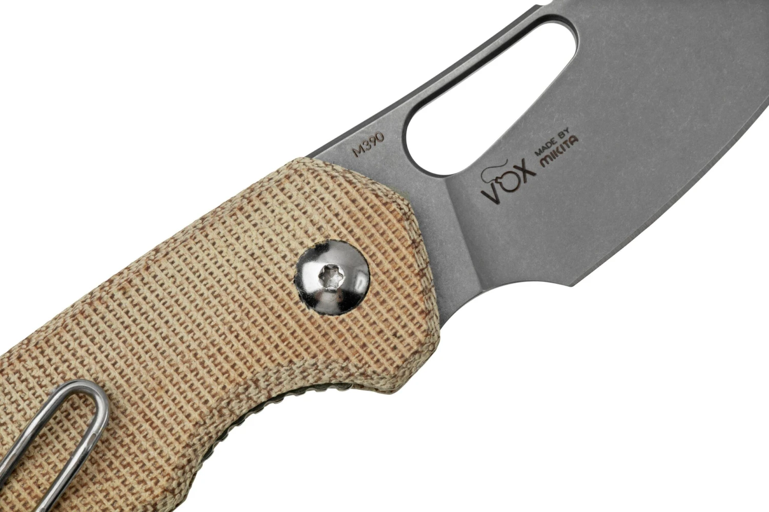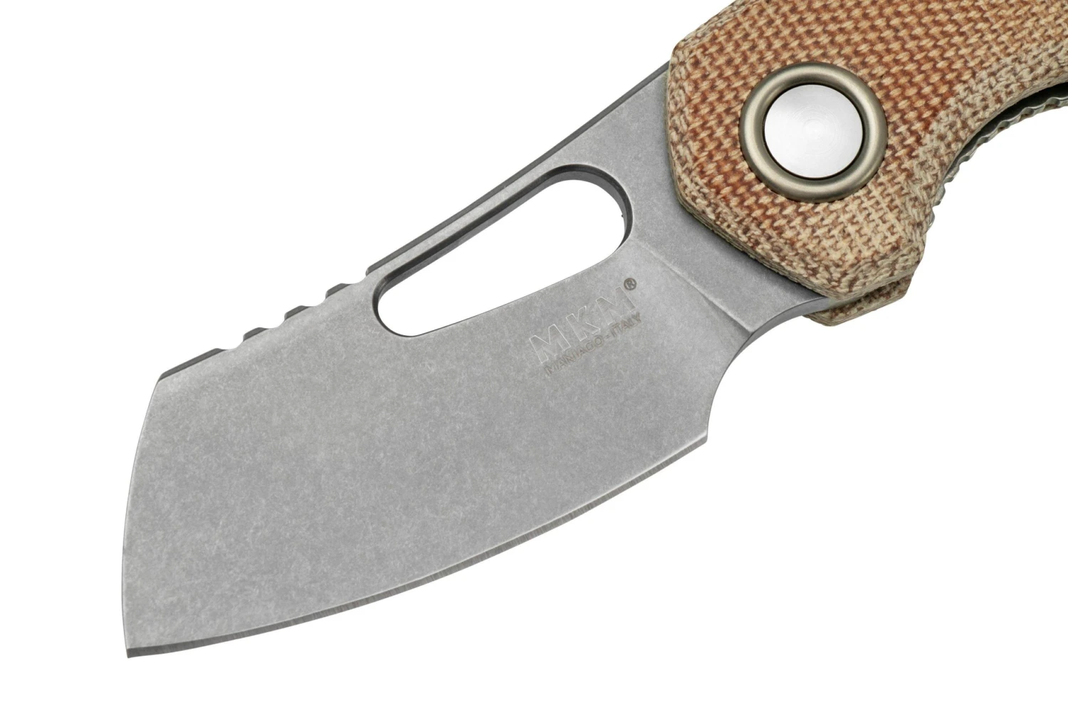 MKM Isonzo FX03M-2NC Cleaver M390, Natural Canvas Micarta Navaja, Jesper Voxnaes Design