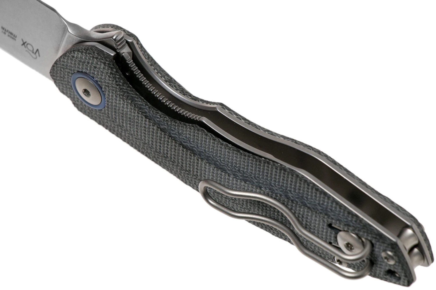 MKM Timavo VP02-BC Black Canvas Micarta Stonewash Navaja, Diseño Voxnaes