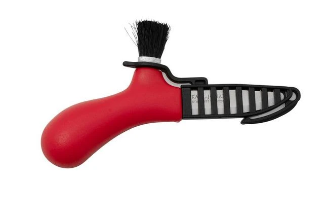 Este Cuchillo para setas Morakniv Karl-Johan es un práctico pequeño cuchillo perfecto para buscar setas. El mango de polímero de forma ergonómica se siente muy bien en la mano, especialmente con el cepillito entre el pulgar y el índice. La hoja es de acero inoxidable reciclado y tiene la punta redondeada. El cuchillo viene con una funda de plástico sencilla pero eficaz. Su amplia abertura facilita su limpieza.