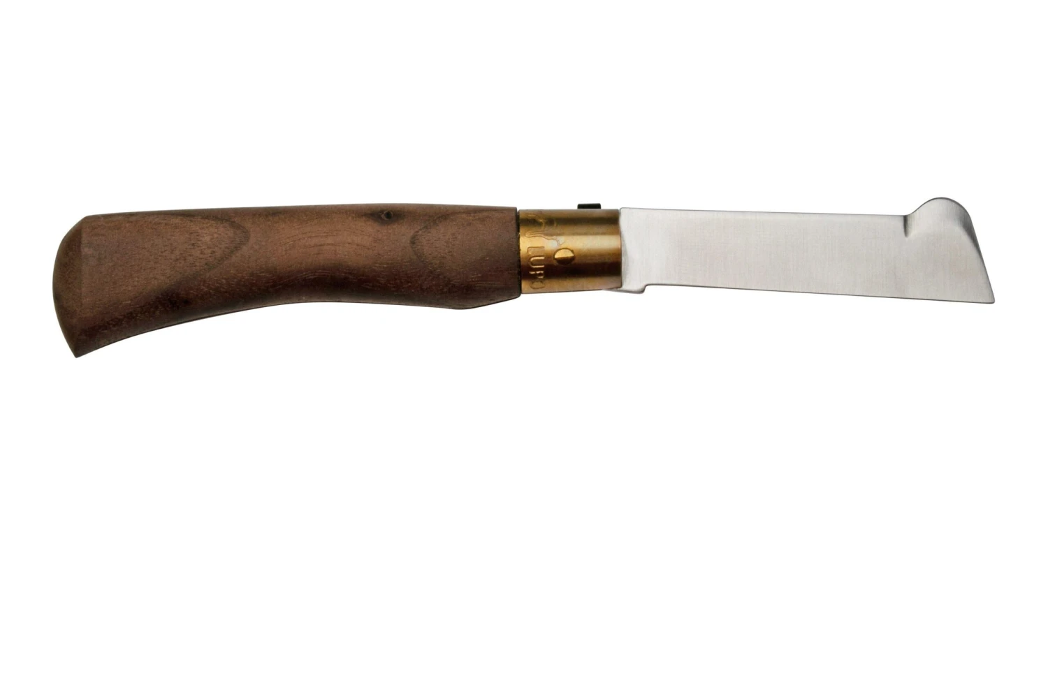 La Old Bear Grafting Walnut es una navaja clásica de Italia. El cuchillo fue diseñado para injertar plantas. En este caso, una parte de la planta (el ent) está unida a una parte de otra planta (el portainjerto). Esta técnica se utiliza a menudo para mejorar y reforzar la planta.