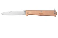 La Otter Mercator 10-601 RG R es una pequeña navaja. El mango es de cobre y la hoja de acero inoxidable 1.4034. Esta Mercator no dispone de clip de bolsillo. El gancho del acollador permite añadir fácilmente un cordón.