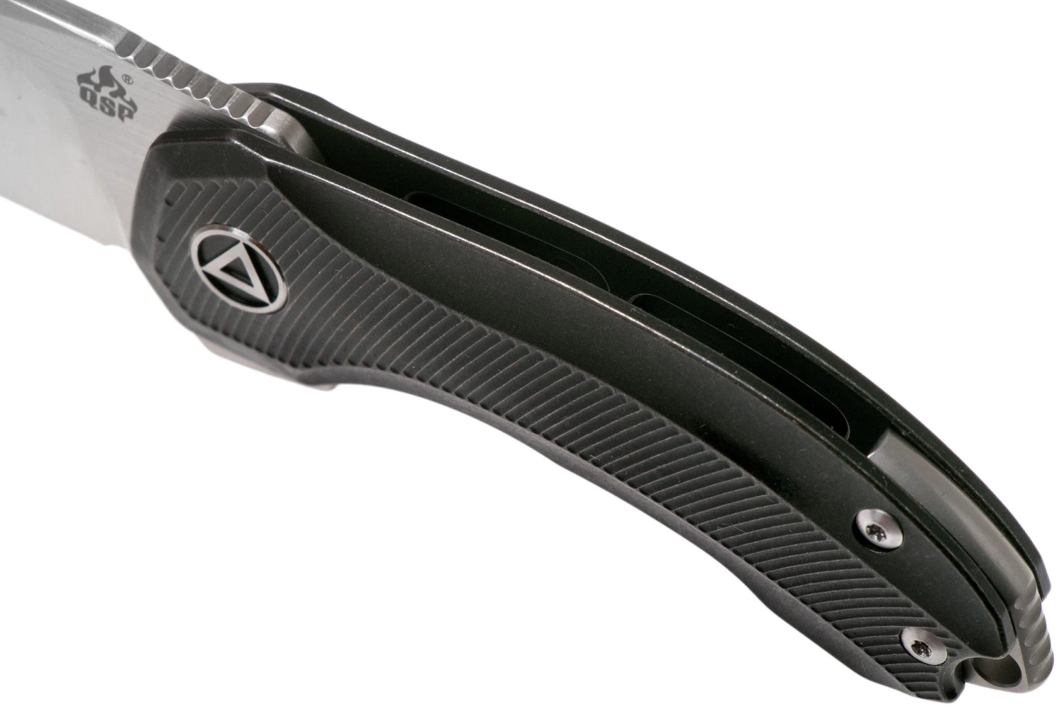 La QSP Hamster Knife es una navaja moderna y compacta, fabricada con materiales de primera calidad. Se puede abrir con el flipper, y un sólido bloqueo frame lock mantiene la hoja firmemente en su lugar. Debido a su tamaño, podrías pensar que este cuchillo es demasiado pequeño para ser utilizado. Y en la práctica, eso está bien. Como el flipper tiene un diseño bastante «cuadrado», puedes incluso poner el dedo índice en el flipper. El ribeteado te da un agarre firme y agradable.