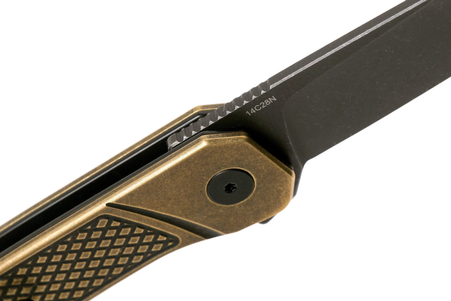 QSP Knife Osprey QS139-D2 Textured Brass, Blackwashed, Navaja