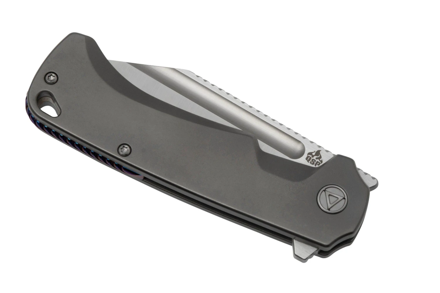 QSP Knife Rhino QS143-A, M390, Bead Blasted Titanium, MokuTi Hardware, Navaja