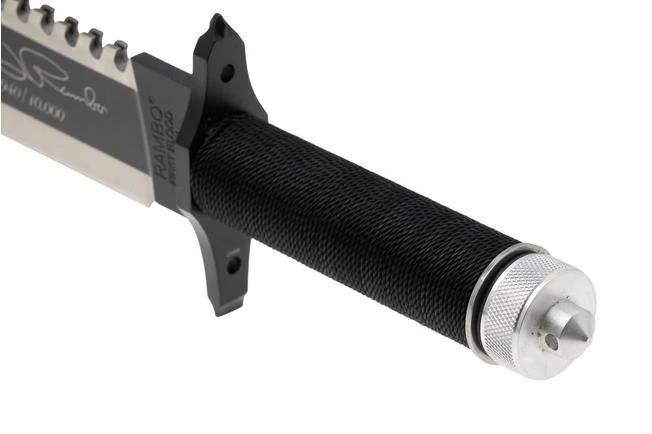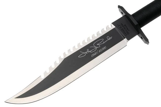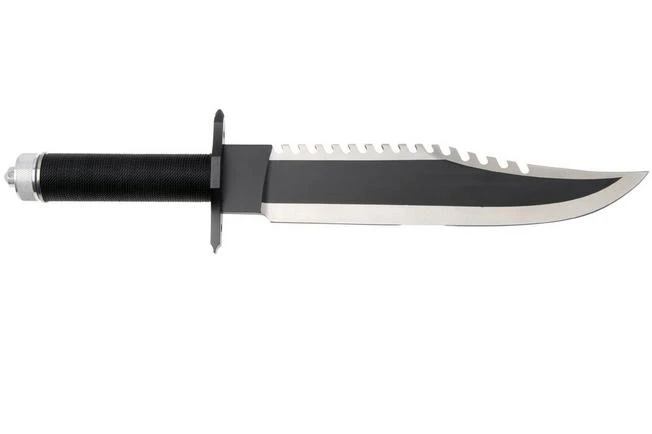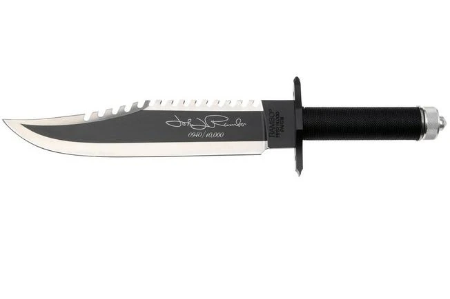 Este Rambo First Blood Part II 9424 Signature Edition es un bowie que aparece en la película «Rambo: Acorralado Parte II». Con este cuchillo de 25.5 cm de hoja y 14 estrías, Rambo puede con todo. La fuerza bruta de este cuchillo no se puede comparar con ningún otro. Además, es un verdadero espectáculo para la vista. Este cuchillo tiene la firma de John Rambo y un número de serie único grabado.