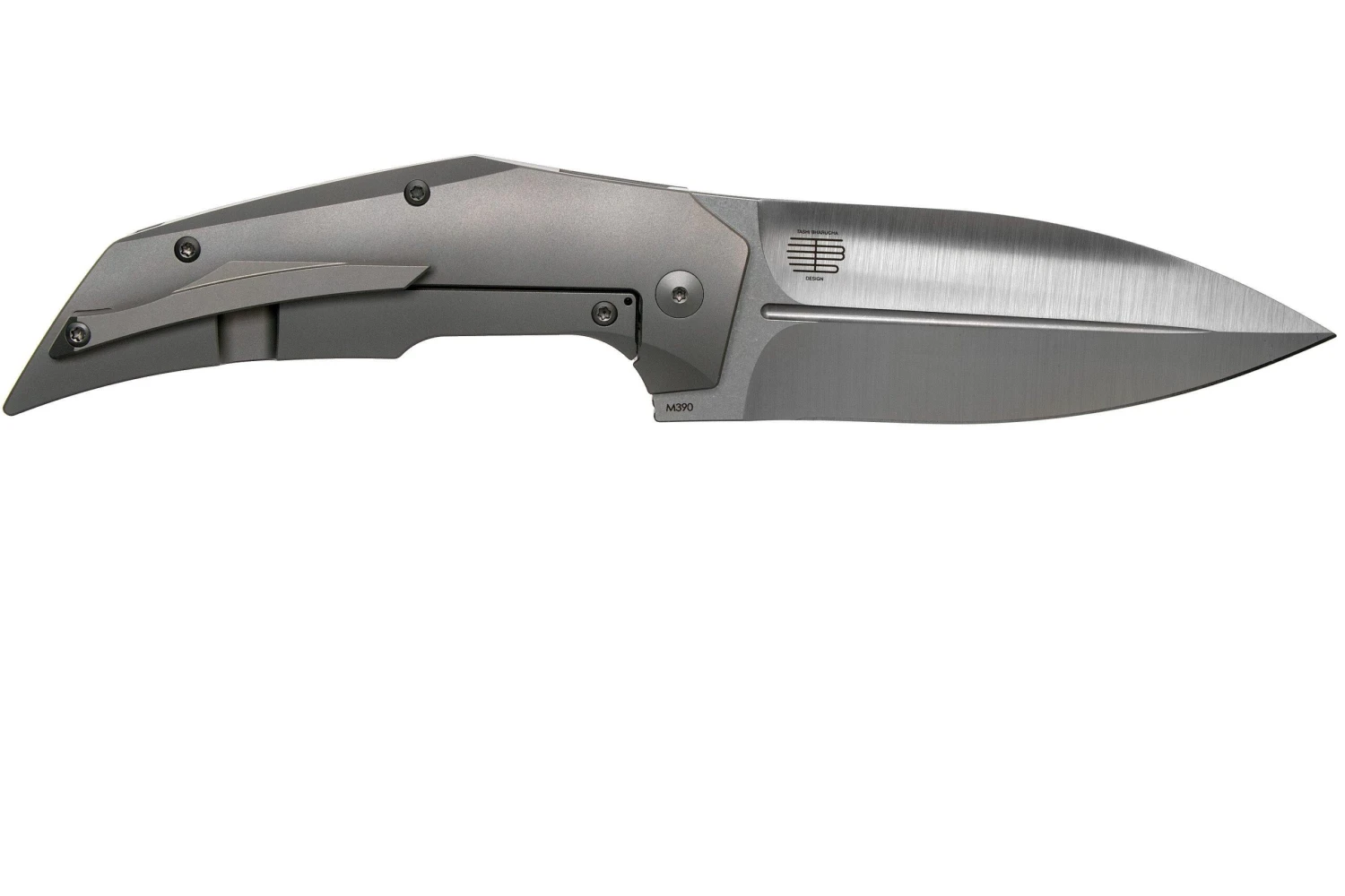 La Reate T4000 es una gran e impresionante navaja diseñada por Tashi Bharucha, un fabricante de cuchillos y diseñador francés de fama mundial. Sus cuchillos suelen tener un aspecto futurista y artístico y la navaja T4000 no es una excepción. Este cuchillo muestra claramente las líneas artísticas y las formas dramáticas que son tan características del estilo de diseño de Bharucha.