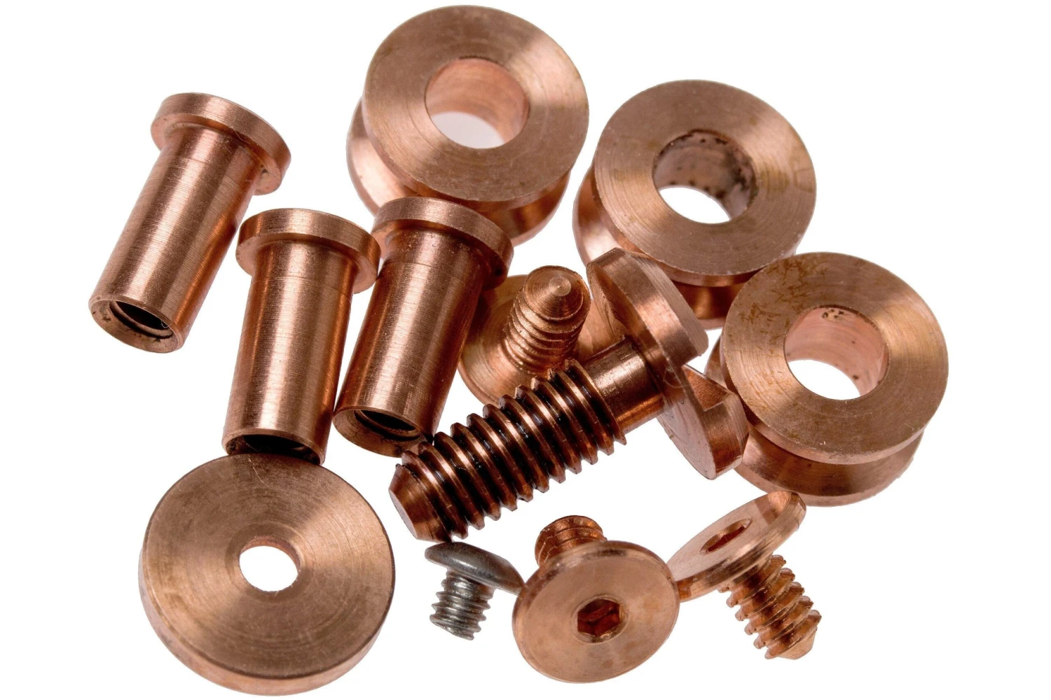 Este Rick Hinderer Complete Brass Hardware Set contiene un montón de piezas para que puedas hacer el Rick Hinderer XM18 3″ completamente tuyo. Este juego está compuesto por: