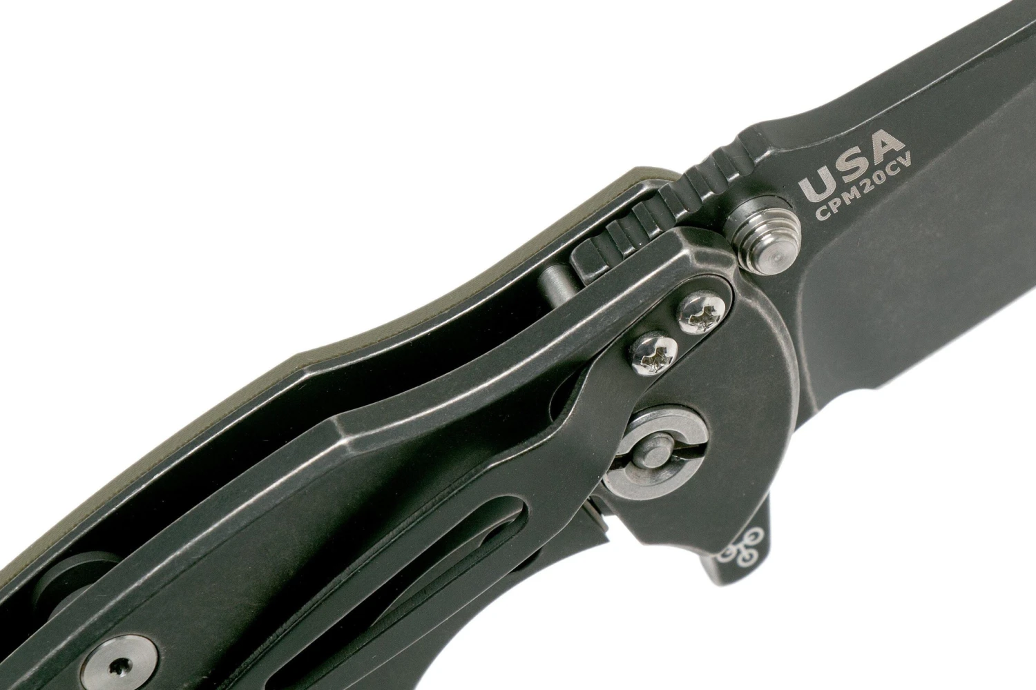 Rick Hinderer Jurassic Slicer Battle Black, OD Green G10 CPM 20CV Navaja
