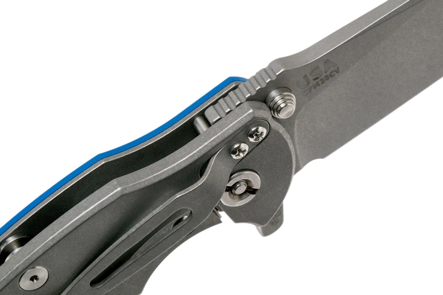 Rick Hinderer Jurassic Slicer Working Finish Blue G10 CPM 20CV Navaja