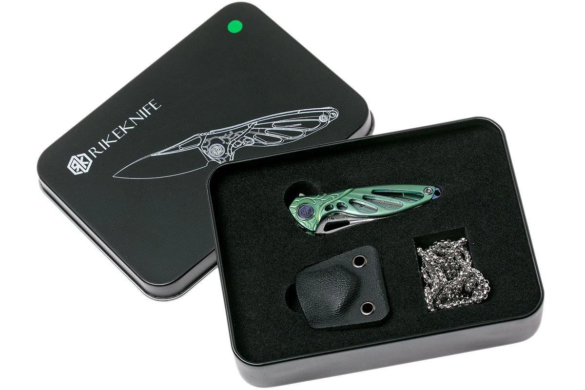 La Rike Mini Hummingbird es una pequeña navaja, fabricada con materiales fantásticos. Rike Knife se ha superado realmente con esta Hummingbird. La hoja está hecha de acero de damasco. Inoxidable y sorprendente. La acción del flipper no tiene precedentes para una navaja tan pequeña. El flipper abre la hoja con la máxima rapidez. Es realmente fantástico para un cuchillo tan minúsculo.