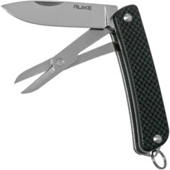 La Ruike S22 es una práctica navaja tipo llavero. Es lo suficientemente compacta como para colgarla fácilmente de tu manojo de llaves y lo suficientemente grande como para ser funcional. Únicamente cuando se tiene cerca este tipo de navaja llavero se nota la frecuencia con la que resulta útil. Cuando se abren cartas y cajas, o se cortan correas de sujeción. Pero también al pelar una manzana o quitar una etiqueta de una camisa. Además de la hoja, esta navaja está dotada de tijeras.