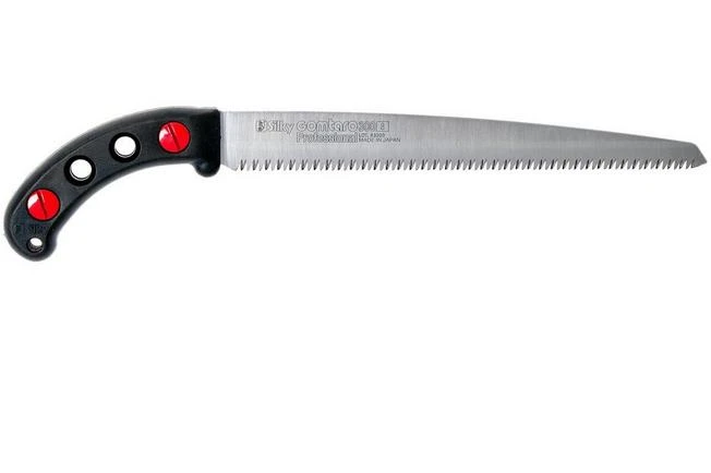 La Silky Gomtaro es una práctica sierra de poda fija. Se utiliza para podar árboles y arbustos. Como tiene una hoja fija no tienes que preocuparte de que se cierre cuando no quieres. Además, cuando se tiene una hoja fija (Silky) se puede alinear perfectamente la forma y la proporción entre el mango y la hoja. Algunos creen que por eso la Gomtaro es aún mejor para trabajar.