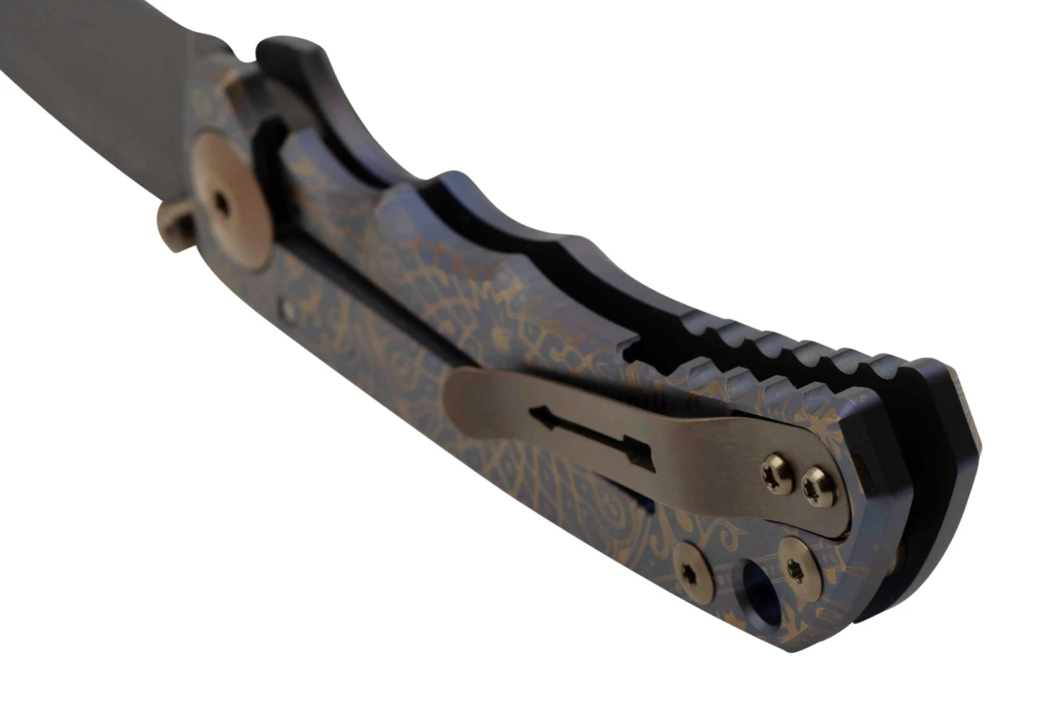 La Spartan Blades Harsey Folder 2022 Special Edition es una navaja de gran tamaño, diseñada por William (Bill) Harsey. Este maestro del diseño de cuchillos tiene un estilo muy reconocible. Reconoces inmediatamente ciertas formas. Por ejemplo, la protuberancia sobre el perno del pulgar y la forma de la base del mango. Esta increíble navaja llamó la atención de más gente porque ganó el premio American Made Knife of the Year 2016 en el Blade Show de Atlanta, Georgia, Estados Unidos.