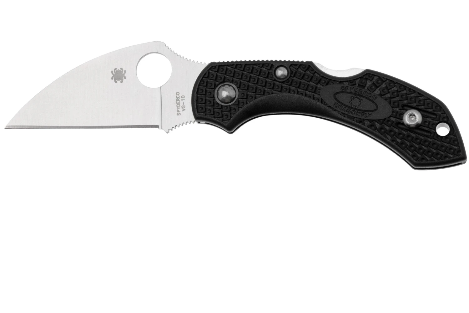 La Spyderco Dragonfly 2 C28FPWCBK2 Wharncliffe es una navaja compacta y bonita. Como una libélula, esta navaja no pesa casi nada. Pocos otros cuchillos con una longitud de hoja de 5,8 cm pesan únicamente 34 gramos. La hoja afilada está hecha de acero Vg10 y conserva muy bien su afilado. El mango está hecho de FRN: un plástico reforzado con fibra de vidrio que mantiene el peso bajo, pero también es muy fuerte.