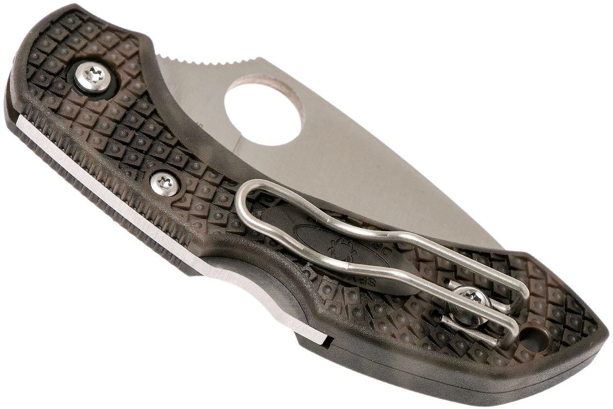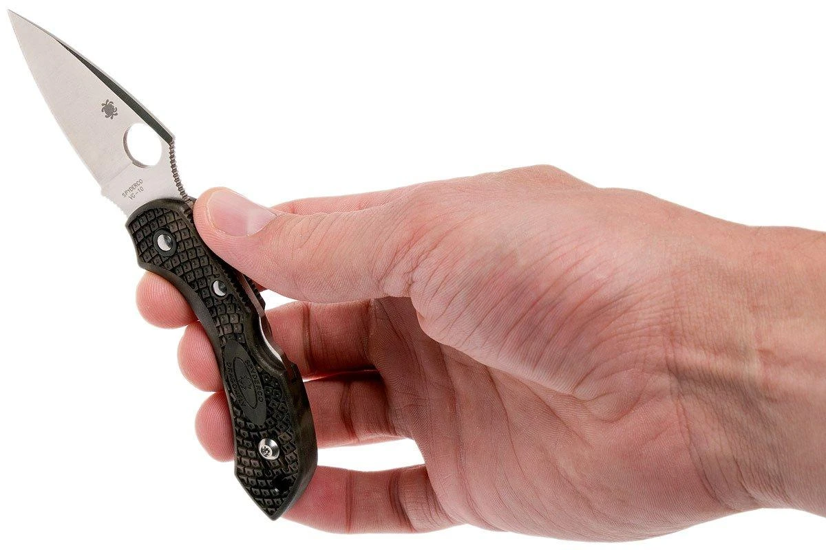 La Spyderco Dragonfly 2 es una navaja compacta y bonita. Como una libélula, esta navaja no pesa casi nada. Pocos otros cuchillos con una longitud de hoja de 5,8 cm pesan únicamente 34 gramos. La hoja afilada está hecha de acero Vg10 y conserva muy bien su afilado. El mango está hecho de FRN: un plástico reforzado con fibra de vidrio que mantiene el peso bajo, pero también es muy fuerte.