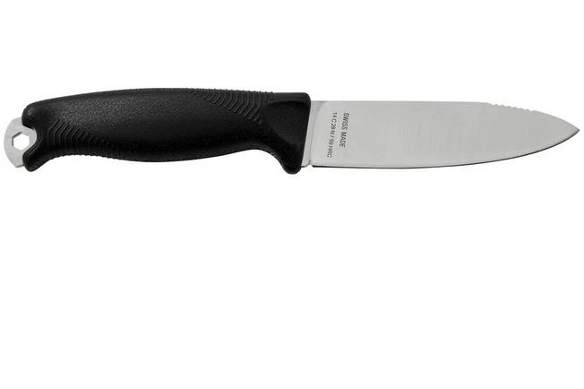 El Victorinox Venture Black es un cuchillo de bushcraft con hoja fija. Desarrollada por expertos en actividades al aire libre, esta fiable pieza de equipo especializado facilita el trabajo en cualquier desafío. La Venture tiene una hoja tipo drop point para un corte preciso, un lomo afilado a 90º para un acero de fuego y una funda que también sirve de cerbatana para encender rápidamente el fuego.
